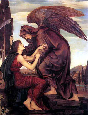 "Samael is an archangel in Talmudic and post-Talmudic lore; a figure who is the accuser or adversary (Satan in the Book of Job), seducer, and destroying angel (in the Book of Exodus). Although many of his functions resemble the Christian notion of Satan, to the point of being sometimes identified as a fallen angel, he is not necessarily evil, since his functions are also regarded as resulting in good, such as destroying sinners." [Samael, Wikipedia]